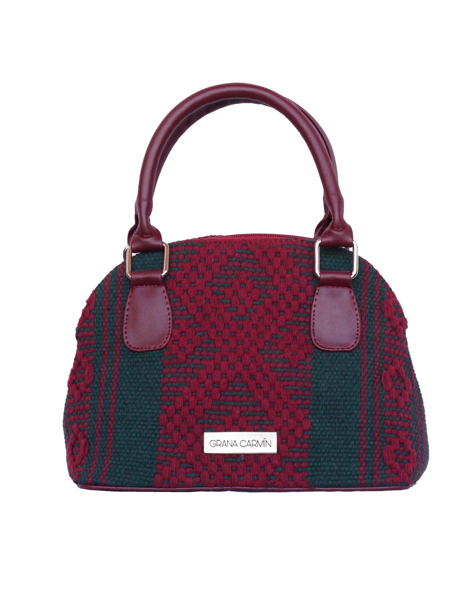 Handmade bag, made with the traditional backstrap loom technique and vegan leather. Green and burgundy colors.
