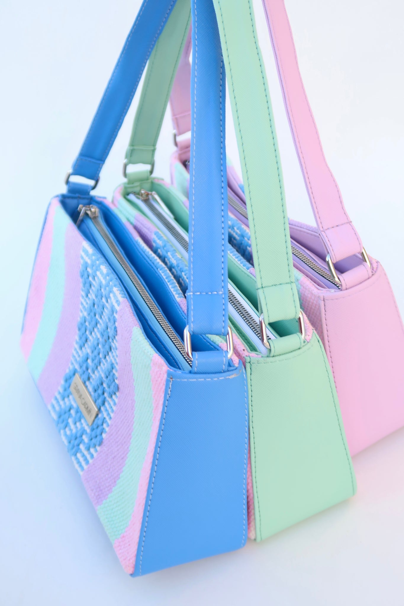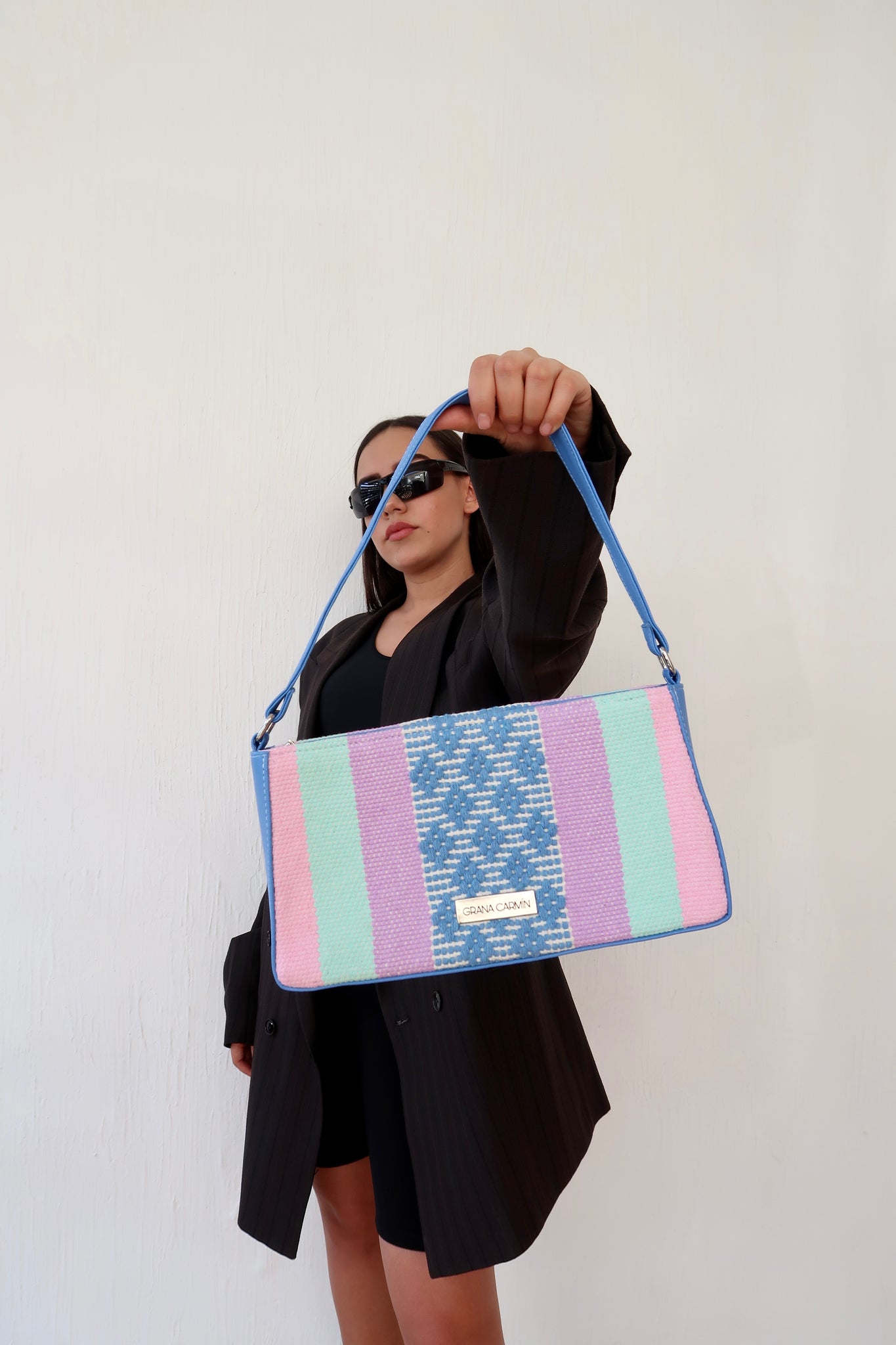 Handmade bag, made with the traditional backstrap loom technique and vegan leather. In different colors.